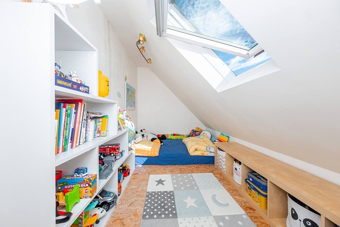 3NP - podkrovní byt 3+1 - obývací pokoj, ložnice, dětský pokoj, kuchyně, koupelna, WC, samostatný vstup na půdu