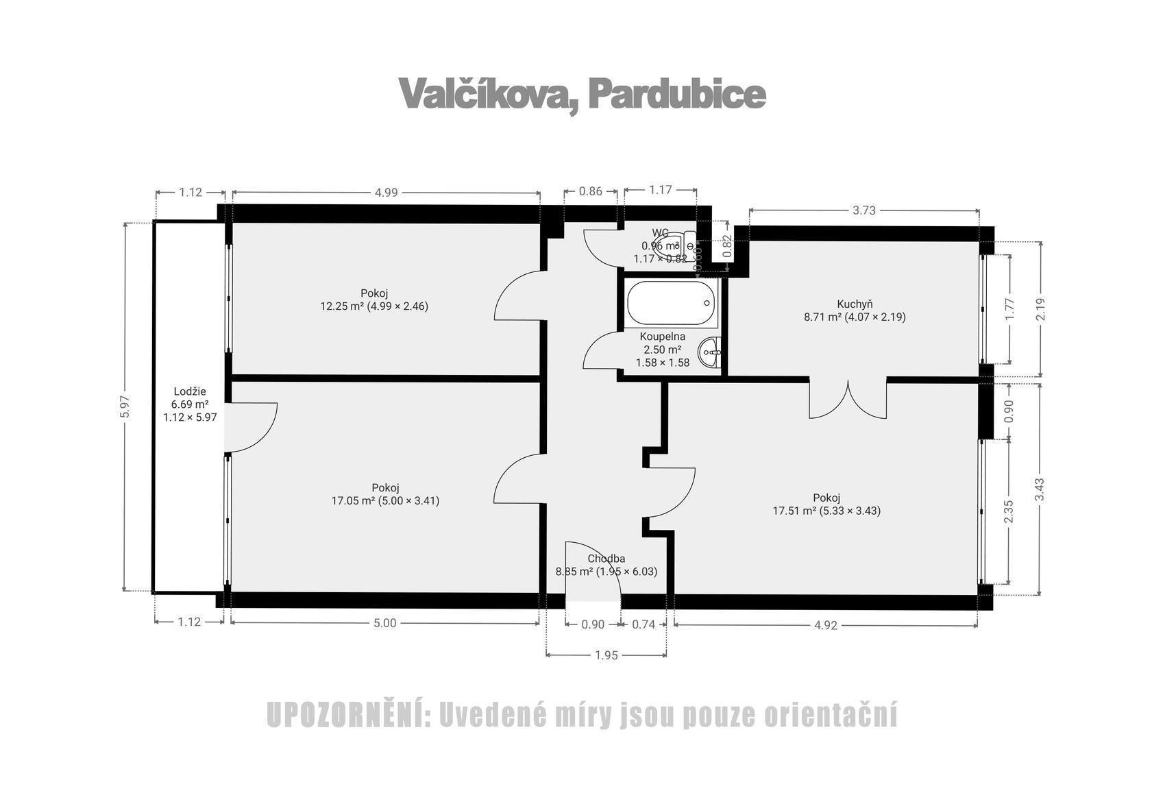 Pronájem bytu 3+1 70 m², Valčíkova, Pardubice-Polabiny