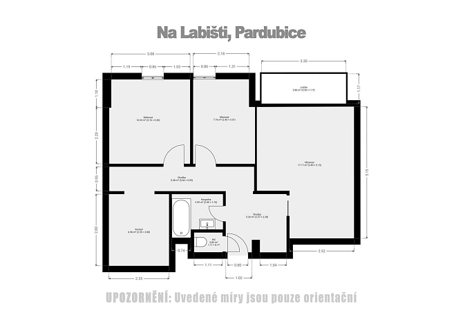 Pronájem bytu 3+kk 61 m², Na Labišti, Pardubice-Polabiny